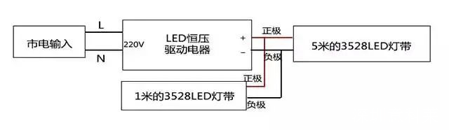 6米的3528,可以用5米+1米的灯带并联,也可以3米+3米的组合进行并联。